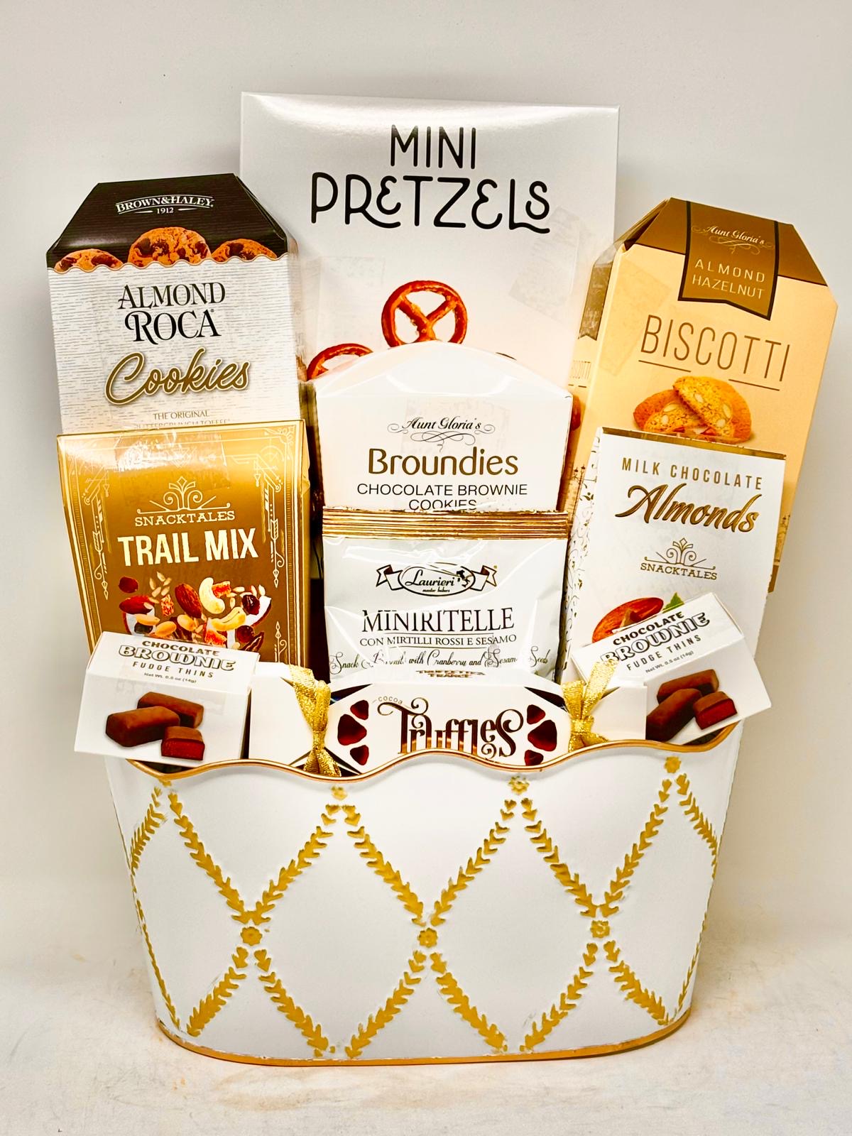 Treat someone special to a taste of luxury this holiday! This premium basket features a handpicked selection of fine chocolates, gourmet snacks, and artisanal delicacies — elegantly presented to impress and delight.