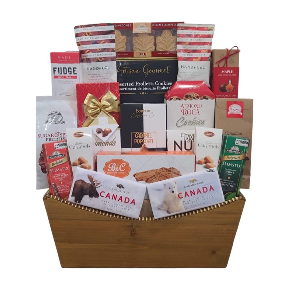 Experience the warmth of the season with Woodland Wonder, a beautifully handcrafted wooden container filled with an assortment of rich, decadent chocolates. Each piece is thoughtfully selected to offer a delightful balance of flavor and indulgence. The natural wood finish adds a timeless, earthy charm—making it an unforgettable gift for family, friends, or clients.